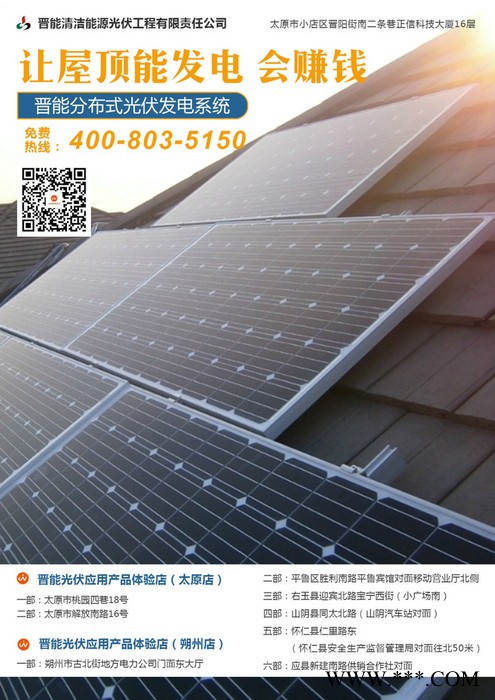 >熱門供應(yīng)> 太陽能光伏和光熱>光伏應(yīng)用產(chǎn)品>晉能光伏工程 光伏發(fā)電系統(tǒng) 分布式發(fā)電系統(tǒng) 戶用分布式太陽能系統(tǒng),太陽能路燈,太陽能應(yīng)用產(chǎn)品,光伏電站